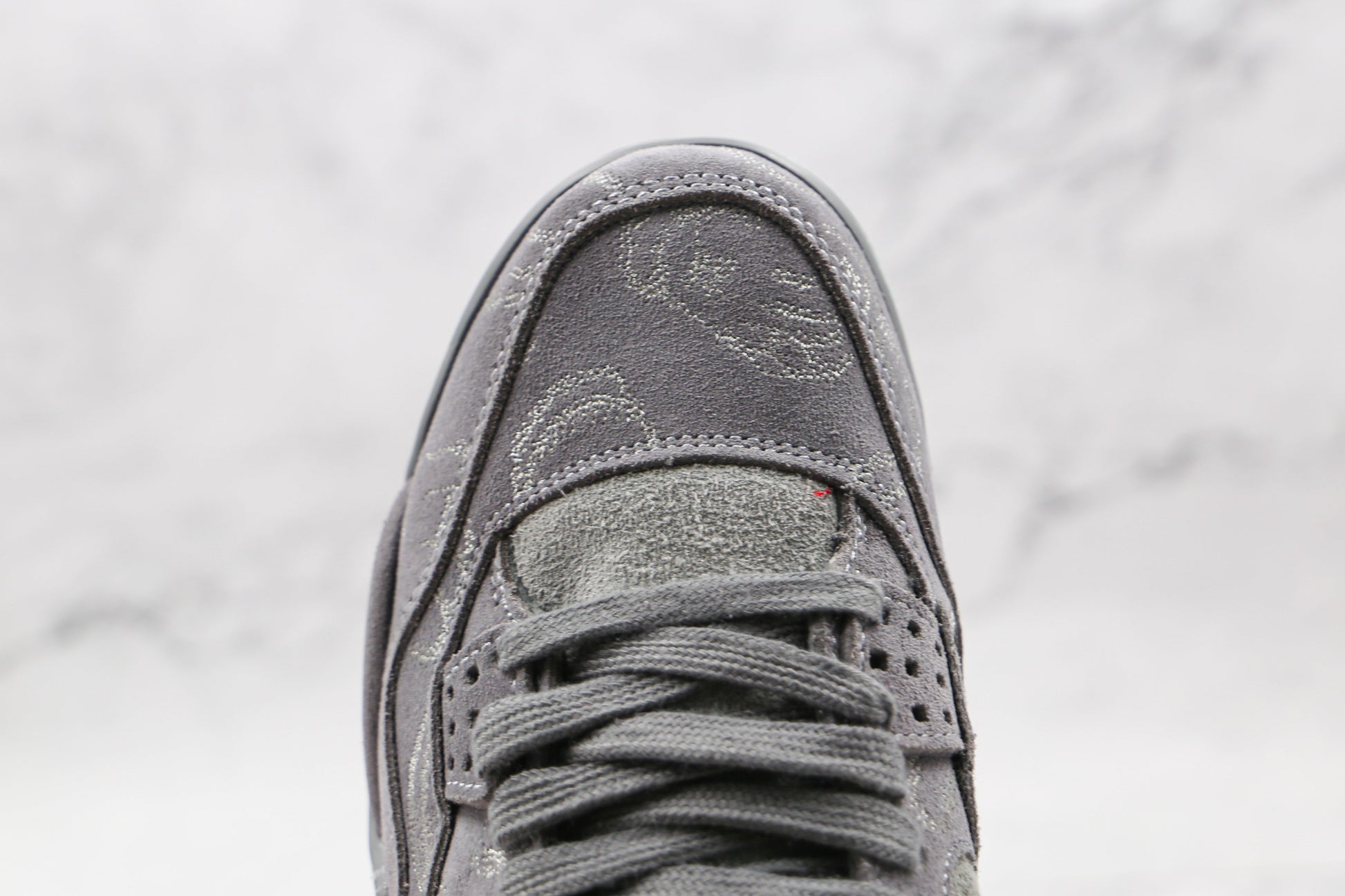 Construído em camurça cinza, o modelo traz textura aveludada e um acabamento tonal que realça cada linha da silhueta clássica.